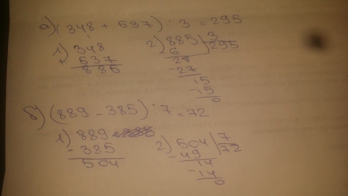 а так 348:3+537:3=116+179=295; 889:7-385:7=127-55=72 можно