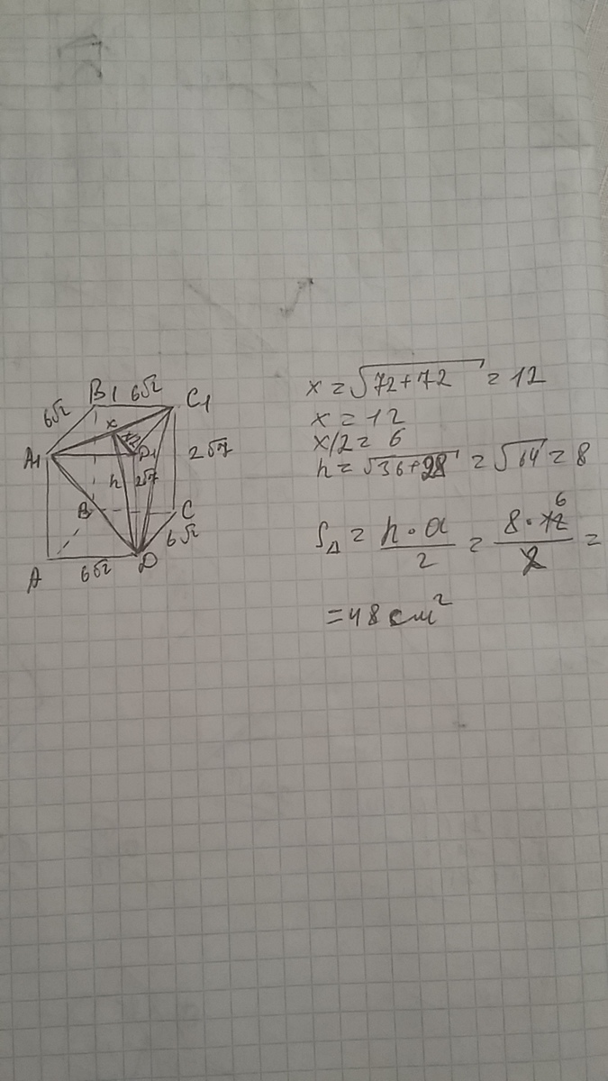 В правильной четырехугольной призме ABCDA1B1C1D1,через диагональ основания A1C1 и вершину Dпроведено сечение.Найдите площадь этого сечения,если сторона
