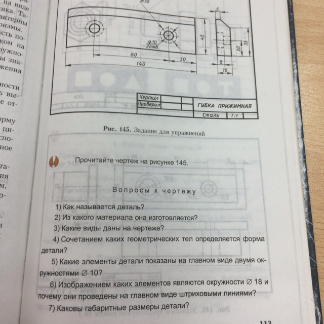 6.Отверстия сделаны не на всю толщину детали, поэтому проведены штриховыми линиями;