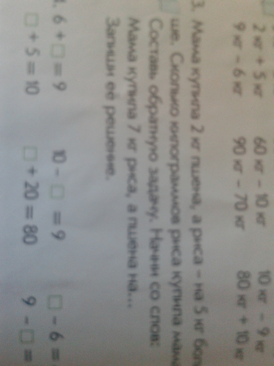 Мама купила 7 кг риса.а пшена на 5 кг меньше. Сколько кг пшена купила мама?