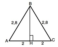 Найдите площадь равнобедренного треугольника, если известно, что его основание равно 4 м, а боковая сторона - 2.8 м.