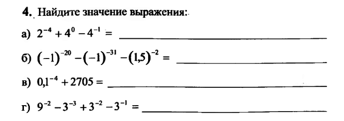 г) 9⁻²-3⁻³+3⁻²-3⁻¹=1/9²-1/3³+1/3²-1/3=1/81-1/27+1/9-1/3=(1-3+9-27)/81=-20/81