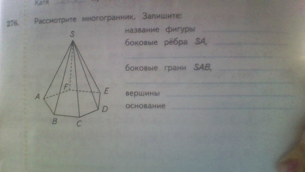 боковые грани: SAB, SBC, SCD, SDE, SEF, SFA.