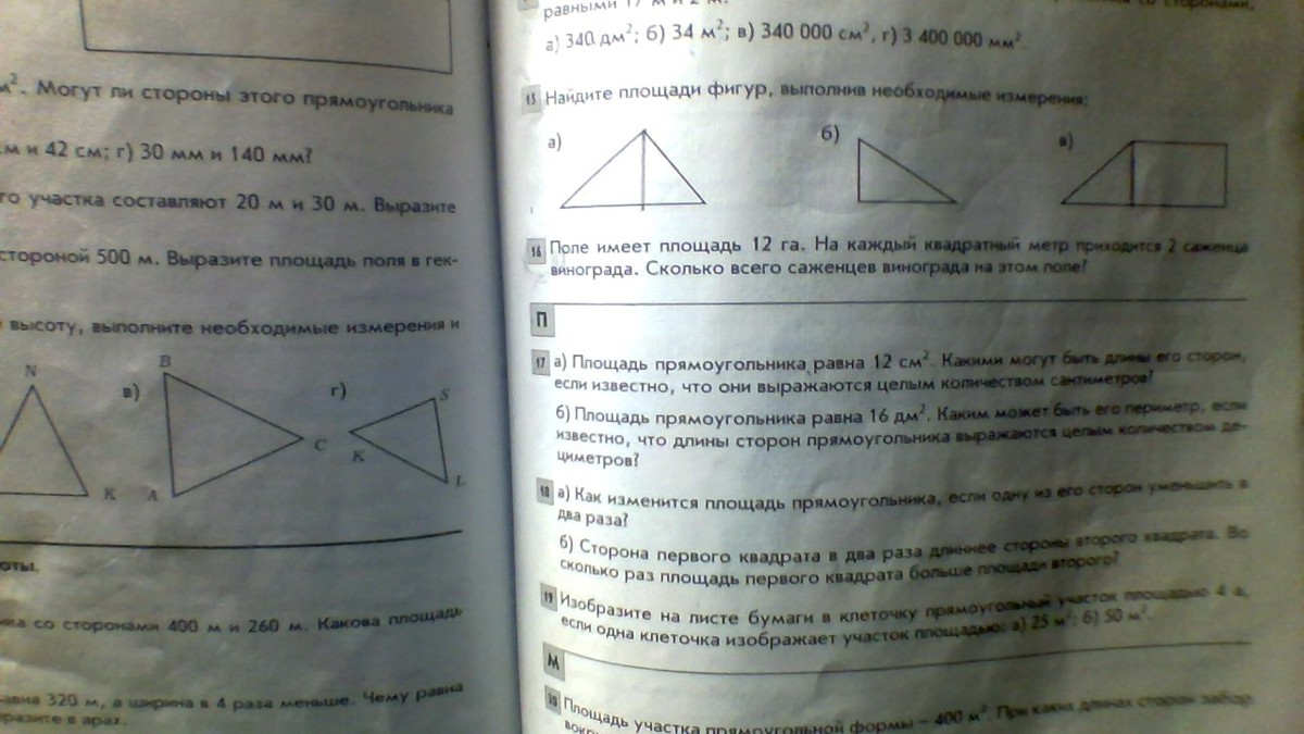 15) Здесь нужно измерить линейкой необходимые для вычисления площади элементы геометрических фигур.
