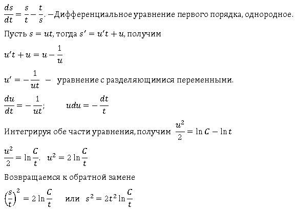 Решить дифференциальные уравнения: 1. ds/dt=s/t-t/s ответ: s^2=2t^2LnC/t 2. y``*y^3=1 ответ: С1*y^2=1+(C1x+C2)^2