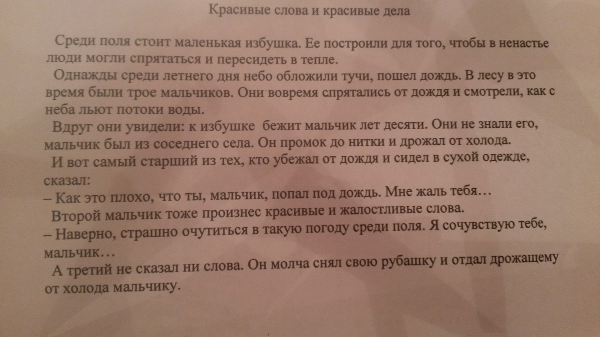 он добрый понимающий и не на словах а на деле он ничего не говоря сделал добрый поступок