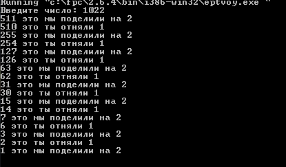 PascalABC. Заданное число либо уменьшается на 1, либо делится пополам если оно четное. Нужно получить 1 за наименьшее количество действий, напишите программу