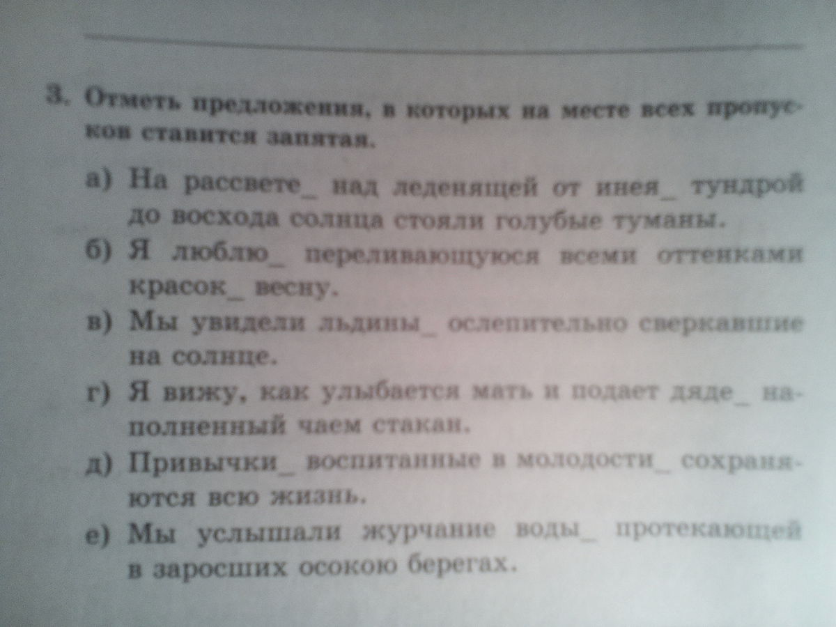 Предложения под буквами в,д, е