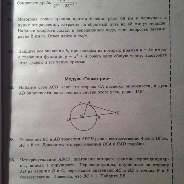Угол АОД-центральный, опирается на дугу в 116 градусов, значит<АОД=116 град. А <АСД=1/2*<АОД=1/2*116=58