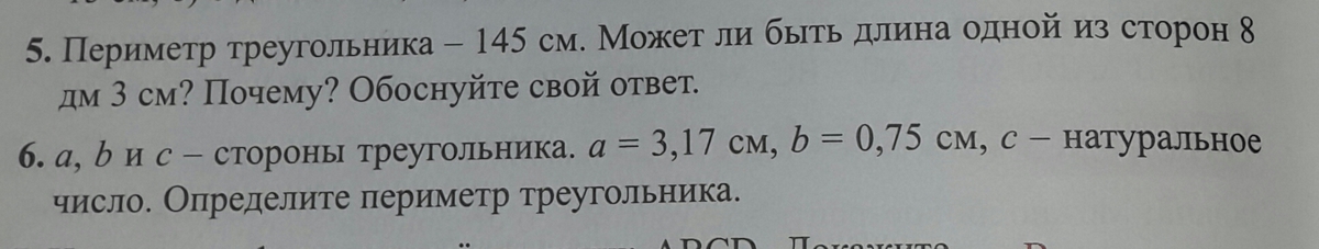 Длина одной из сторон не может быть равна 8дм3см, т.к. сумма длин двух других сторон треугольника должна превышать длину третьей стороны (признак существования треугольника):