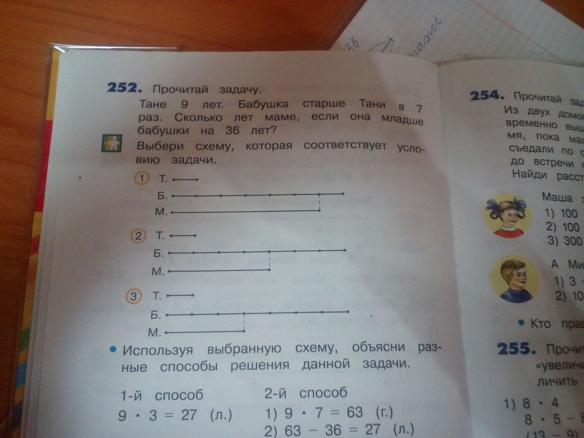 тане 9 лет. Бабушка старше тани в 7 раз. Сколько лет маме, если она младше бабушки на 36 лет? срочно к завтрощнему дню!!! ребята, пожалуйста!!! и объясните пожалуйста как решается первое действие в низу!!)
