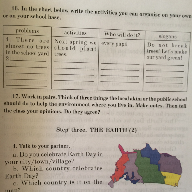 activities: We should clean and level the ground and put up 2 basketball pole hoops. (Мы должны очистить и выровнять землю и установить 2 столба с баскетбольными корзинами.)