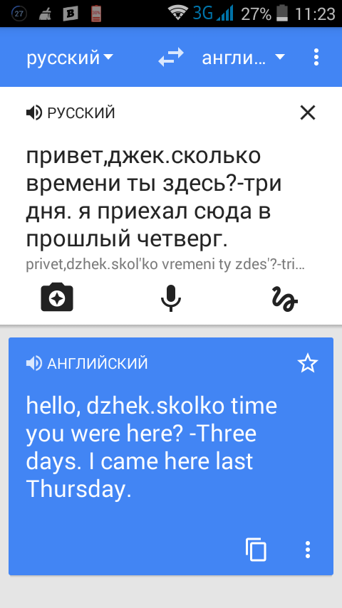 1-Привет, Джек. Сколько времени ты уже здесь? - Три дня. Я приехал сюда в прошлый четверг.