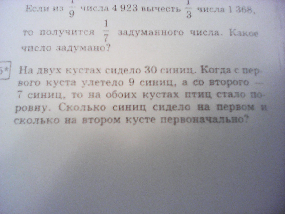 Ответ: 16 и 14 птиц сидело на 1-м и 2-м кусте соответственно