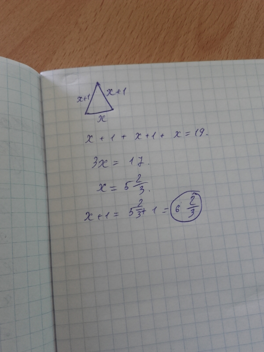 составить систему уравнений . Периметр в равнобедреного треугольника равен 19 см . Его боковая сторона на 1 см меньше основания найдите стороны треугольника