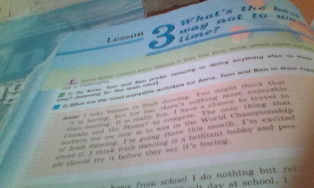 Я беру уроки ирландского танца. Вы можете думать, что это скучно, но для меня нет ничего увлекательнее, чем танцы. Это действительно весело. У меня был шанс поехать в канаду и сша. Единственная вещь, которая волнует меня сейчас - это победить на чемпионате мира по ирландским танцам. Я еду туда в этом месяце. Я очень довольна этим. Я думаю, что ирландский танец-это великолепное хобби, и люди должны сначала попробовать, прежде чем сказать, что это скучно