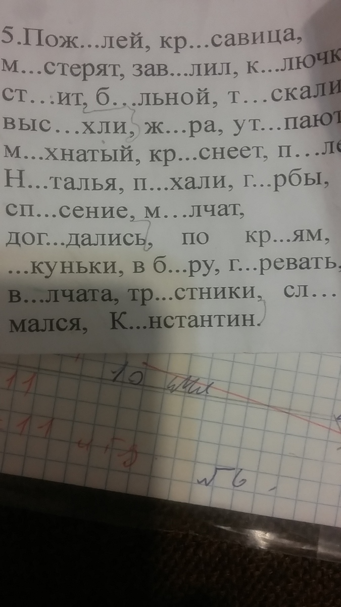 Пожалей-жалость, красавица-красный, мастерят-мастер. завалил-вал. колючка-колется.стоит-стой. больной -боль. тискали-тискать. высохли-сохнуть. жара-жар. утопают-утопленник. мохнатый-мох. краснеет-красный. ?слово полностью не видно. Наталья-имя не проверяется. но можно проверить Ната. пахали-пашут. гербы-герб. спасение-спас. молчат-молча. догадались-догадка. по краям-край. окуньки-окунь. в бору-бор. горевать-горе.волчата-волк. тростники-трость. сломался-сломан.Константин-Костя.