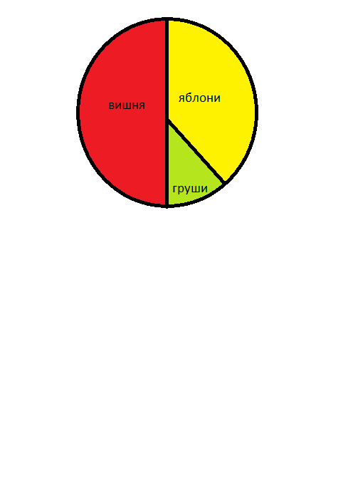 саду 1 3 всех деревьев яблони 1 6 груши остальные вишневые деревья с Постройте круговую диаграмму показывающую распределение деревьев в саду