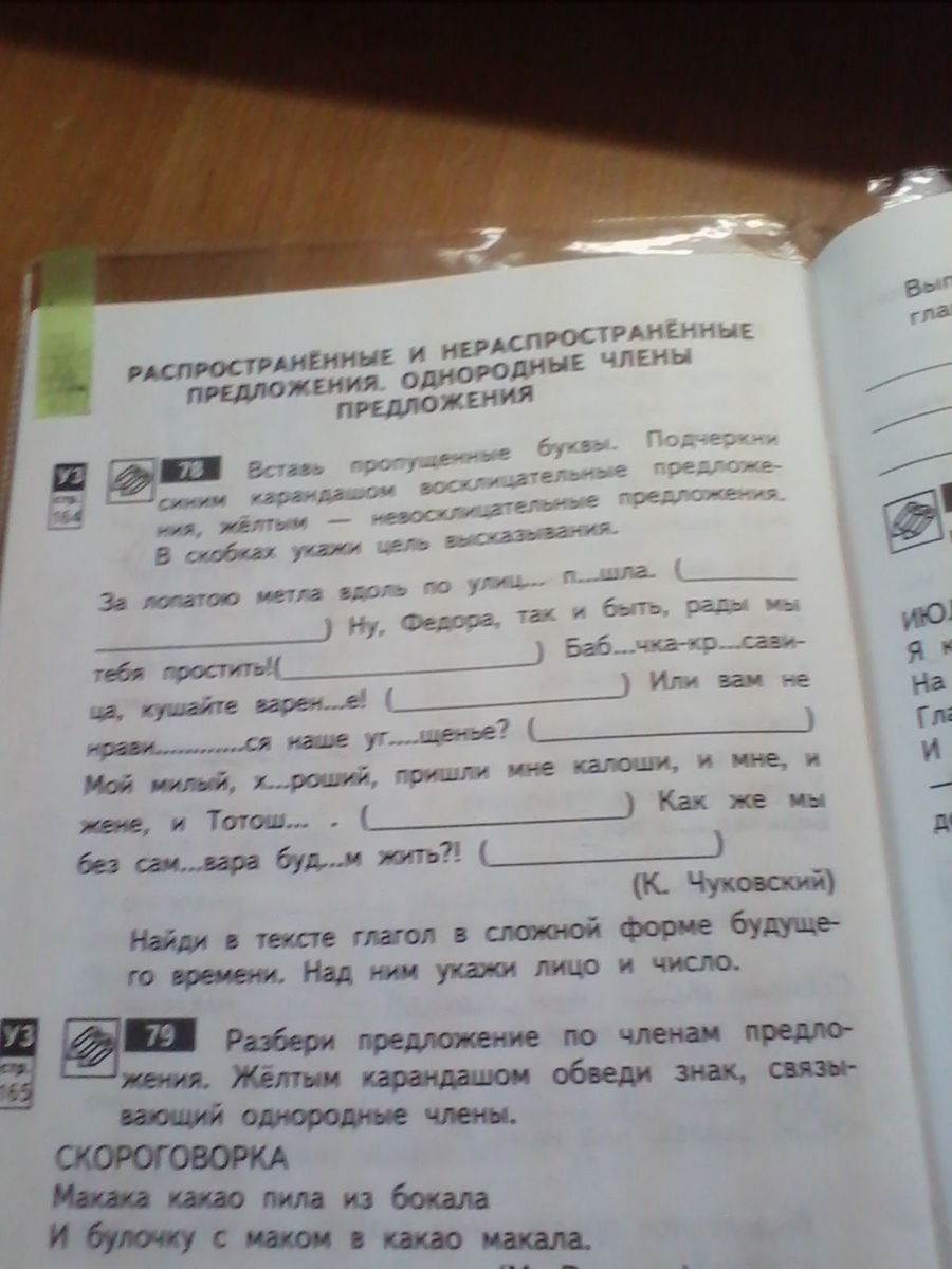 За лопатою метла вдоль по улице пошла .(Повествовательное) Ну, Федора, так и быть, рады мы простить! (Восклицательное) Бабочка-красавица, кушайте варенье! (Восклицательное) Или вам не нравится наше угощение?(Вопросительное) Мой милый, хороший, пришли мне калоши, и мне, и жене, и Тотоше. (Повествовательное) Как же мы без самовара будем жить?(Вопросительное)