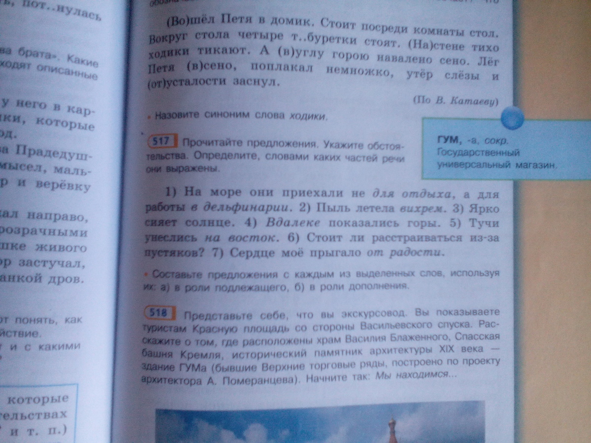 Прочитайте предложения . Укажите обстоятельства . Определитель, словами каких частей речи они выражены номер 517 заранее спасибо