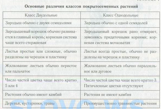 Тема отличительные признаки двудольных и однодольных растений вопросы количество семядолей где находятся питательные вещества тип жилкования листьев строение проводящей системы тип корневой системы примеры однодольных и двудольных растений все эти вопросы нужно встает вить в таблицу и сама таблица сверху признаки одн и двуд ПОМОГИТЕ ПЖ