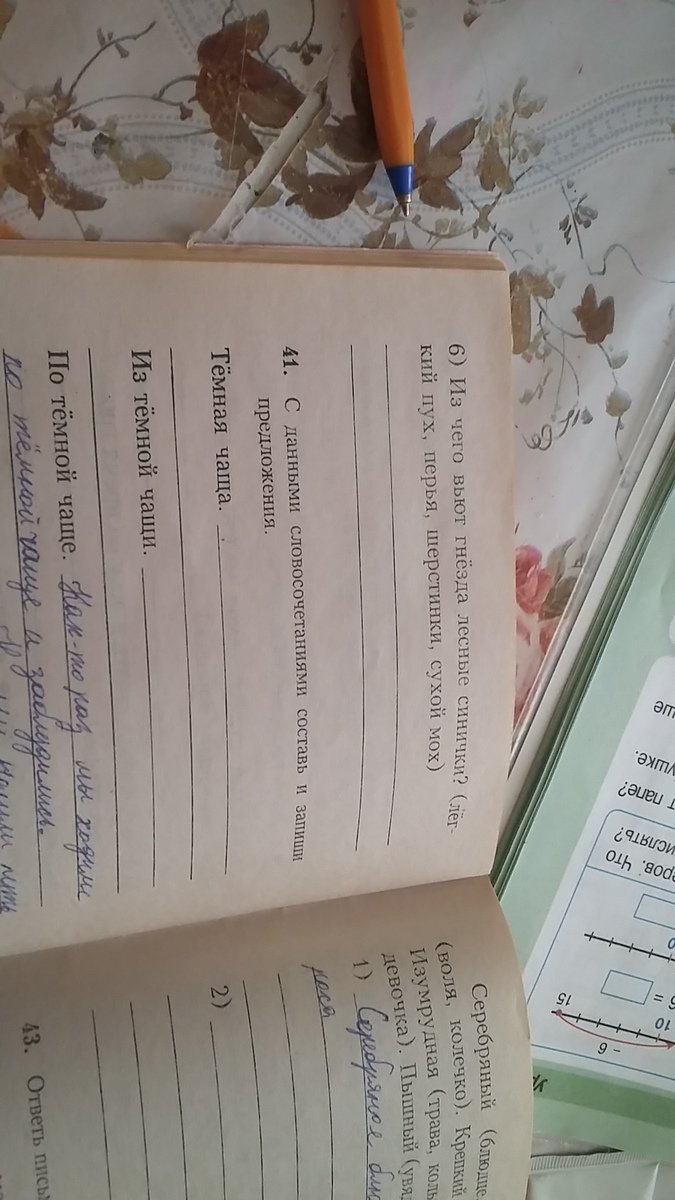 2) Из темной чащи виднелось высокое дерево на котором сидела белка.