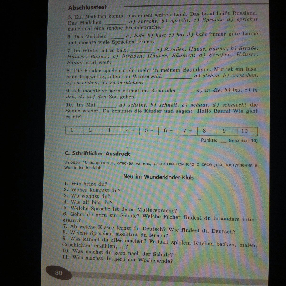 7).Ich lerne Deutsch ab (с какого класса учишь немецкий) Klasse. Ich finde Deutsch ziemlich interessant