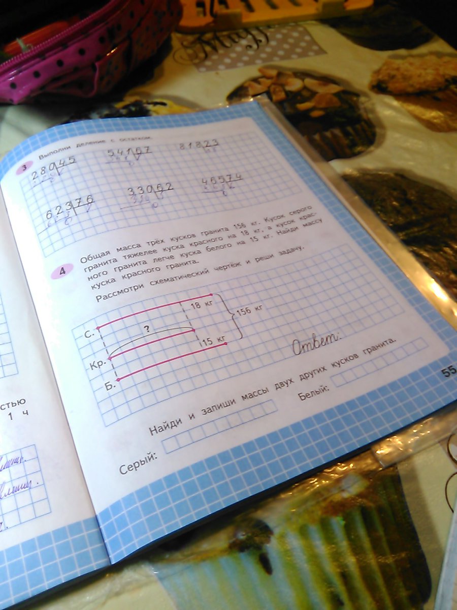 Пусть масса красного гранита будет Х(кг), тогда масса серого - (Х+18)кг, белого - (Х+15) кг. Т.к. общая масса кусков гранита 156 кг, то: