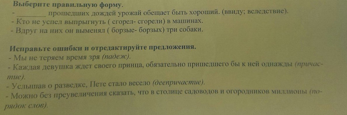 Вследствие. Сгорел. Борзых. Времени. В столице миллионы садоводо