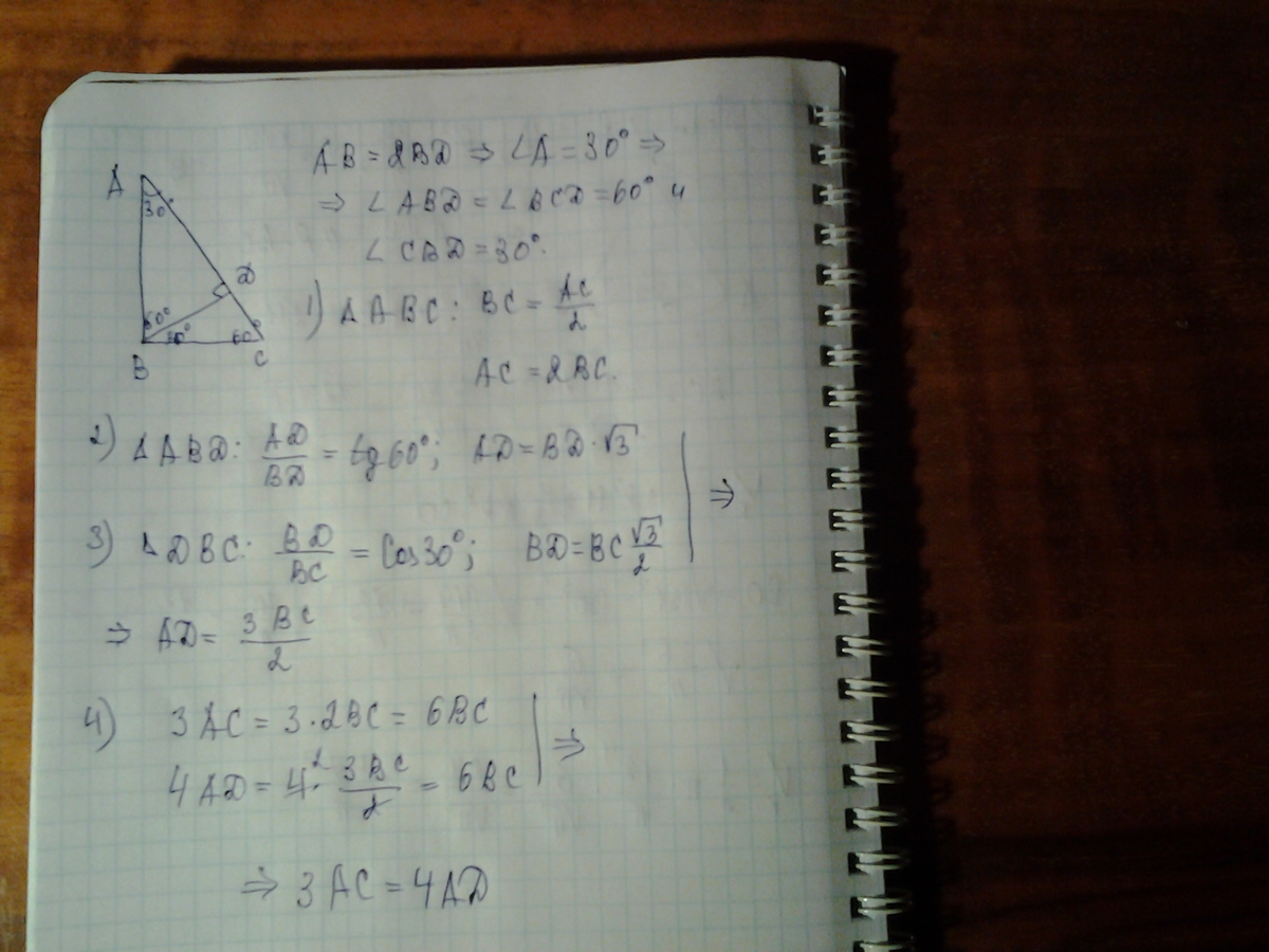 Решите пожалуйста! В треугольнике АВС угол В=90 градусам;ВD-высота,АВ=2ВD.Докажите,что 3АС=4АD