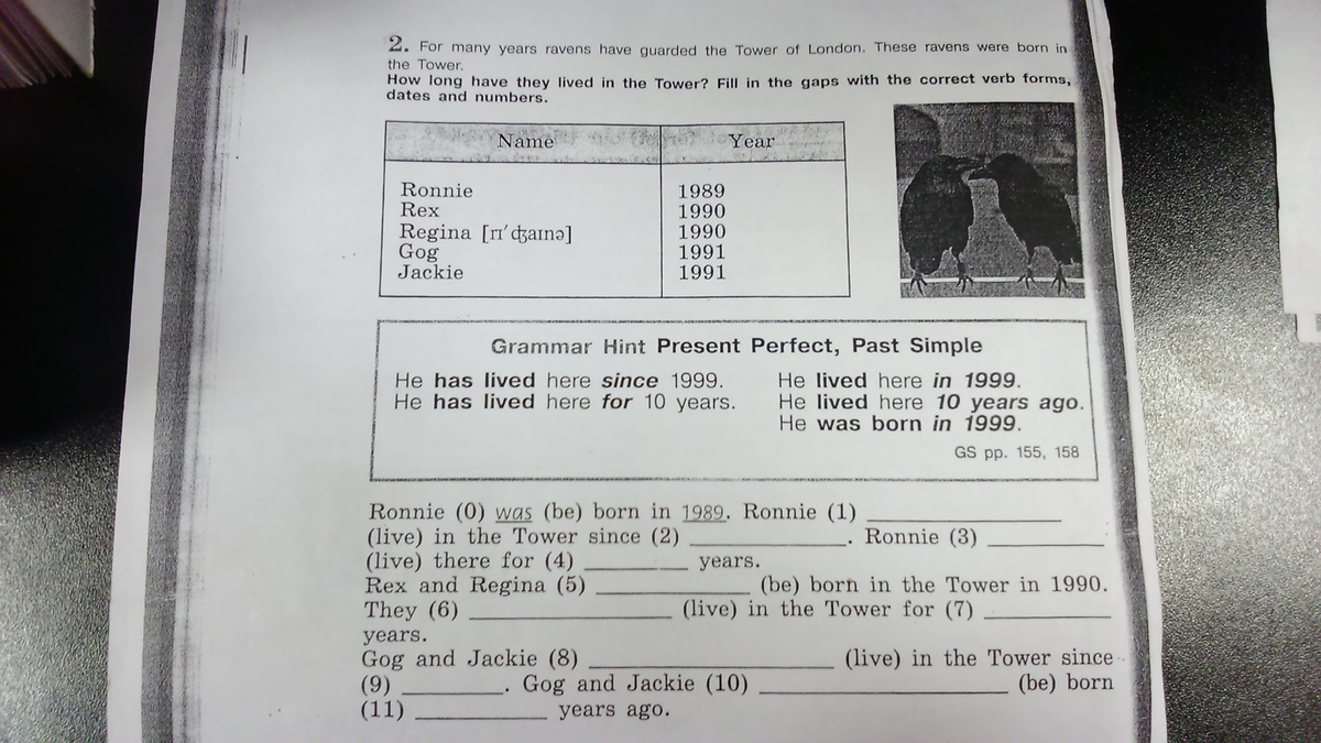 1-has lived, 2-1989, 3-has lived, 4-10, 5-were born, 6-had lived, 7-9, 8-had lived, 9-1991, 10-were born, 11-9