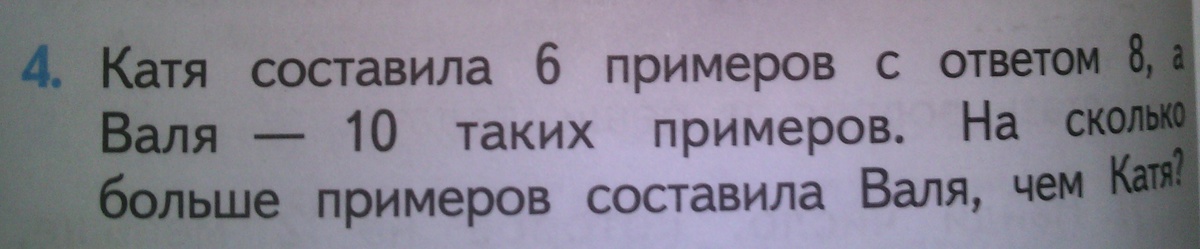 На 4 примера Валя составила больше, чем Катя