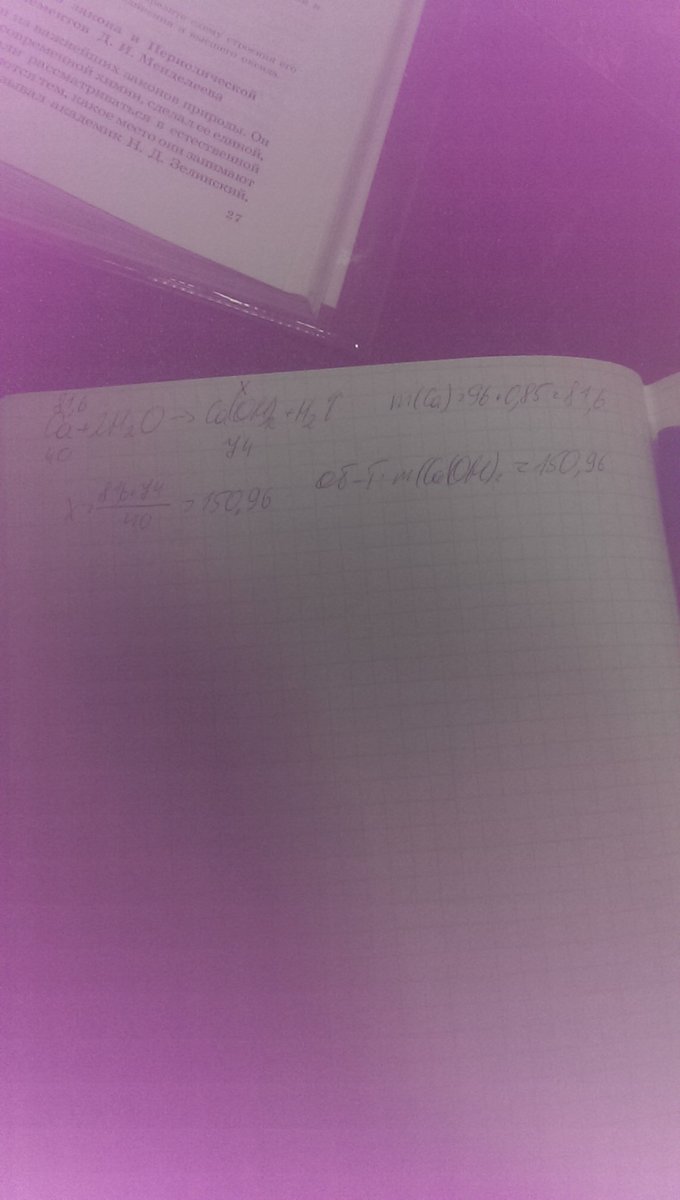 Какая масса гидроксида кальция получится при взаимодействии воды с 96 г кальция, содержащего 15 процентов примесей?