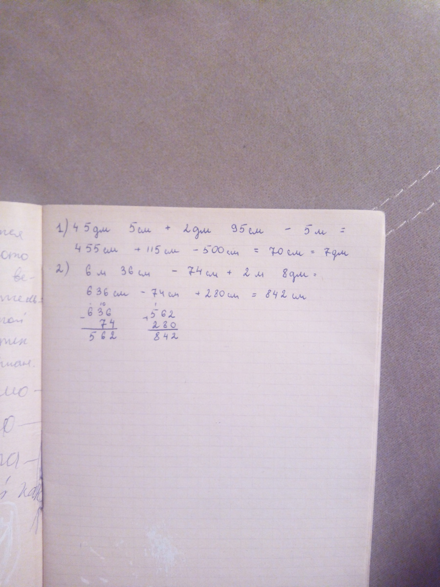 2) 6 м 36 см - 74 см = 636 см - 74 см = 562 см