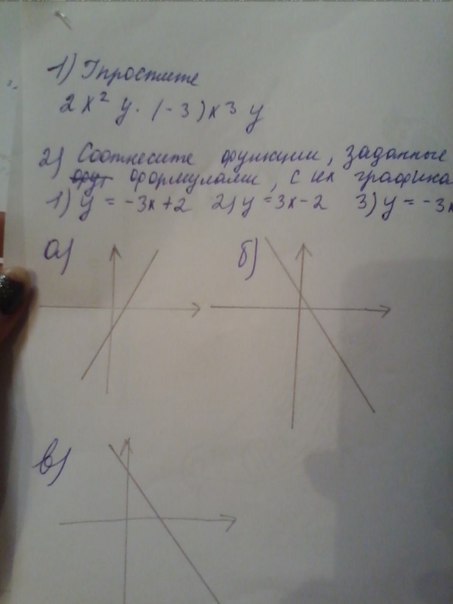 Помогите пожалуйтса)1) упростить2)соотнесите функции ,заданные формулами ,с их графиками.всё на фото)в третьем не видно там у=-зх.