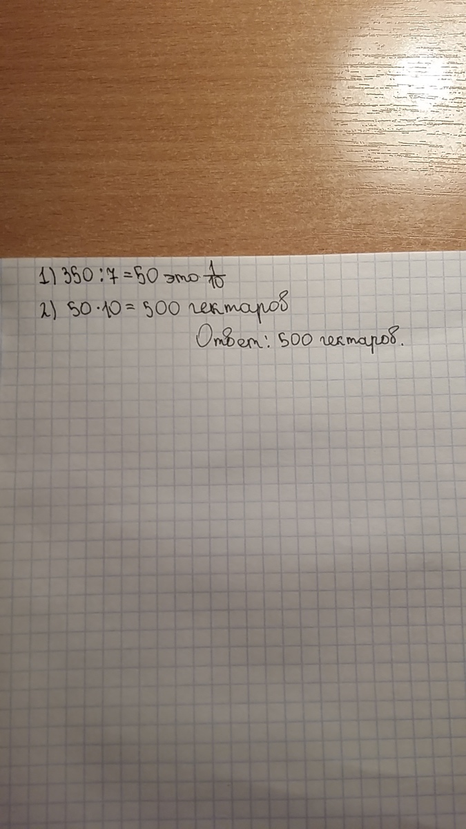 в совхозе посевы составляют 7/10 всей площади , пренадлежащей совхозу. найдите эту площадь если посевы занимают 350 гектаров