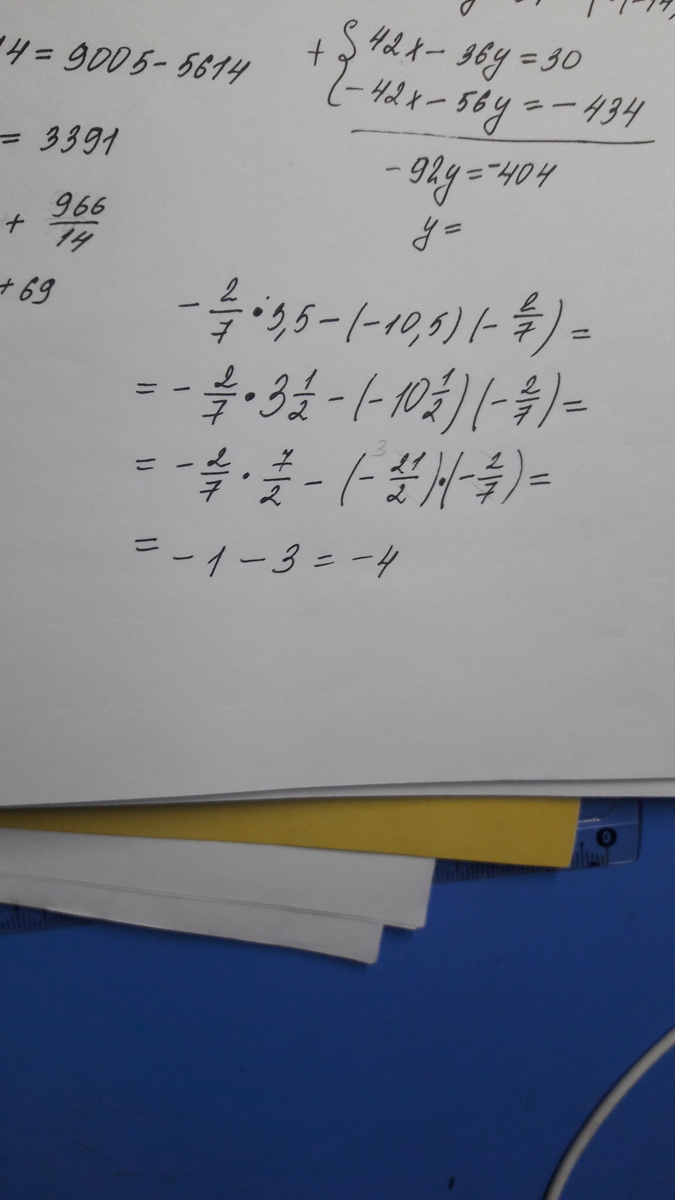 Вычислите наиболее удобным способом: -2/7*3,5-(-10,5)*(-2/7)