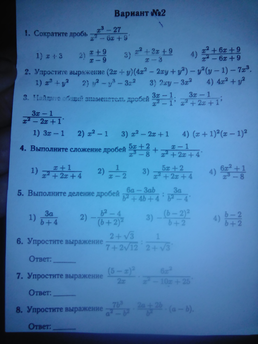 1) х^3-27/ х^2-6х+9 = ( х^2-6х+9)* (х-3) / х^2-6х+9= х-3