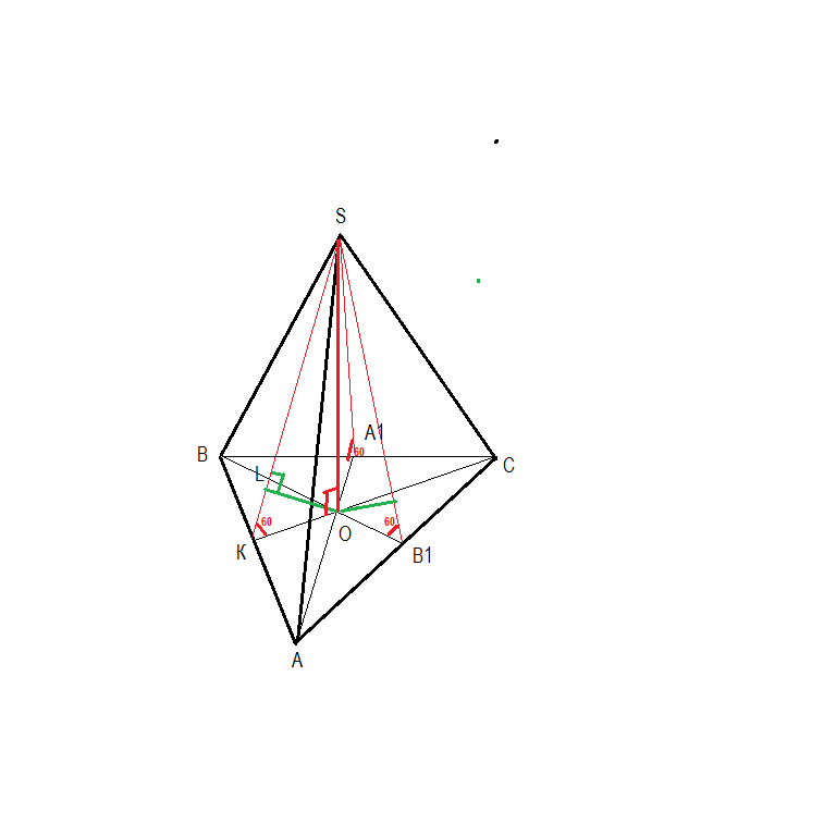 треугольник SKO -прямоугольный | SO | ┴ (ABC)