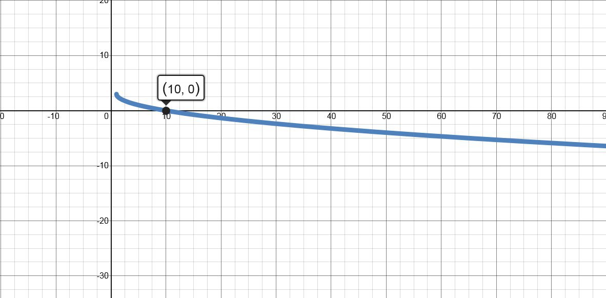 Пока что видим, что функция убывает. Найдем пересечение с нулем. Для этого просто найдем