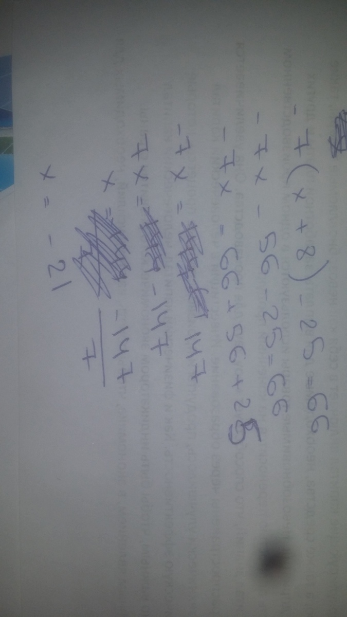 решите уравнение - 7 ( х + 8) - 25 = 66