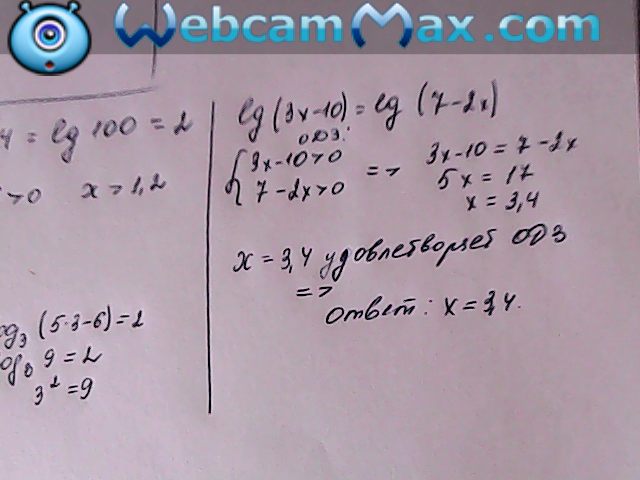 б) lg(3x-10)=lg(7-2x)