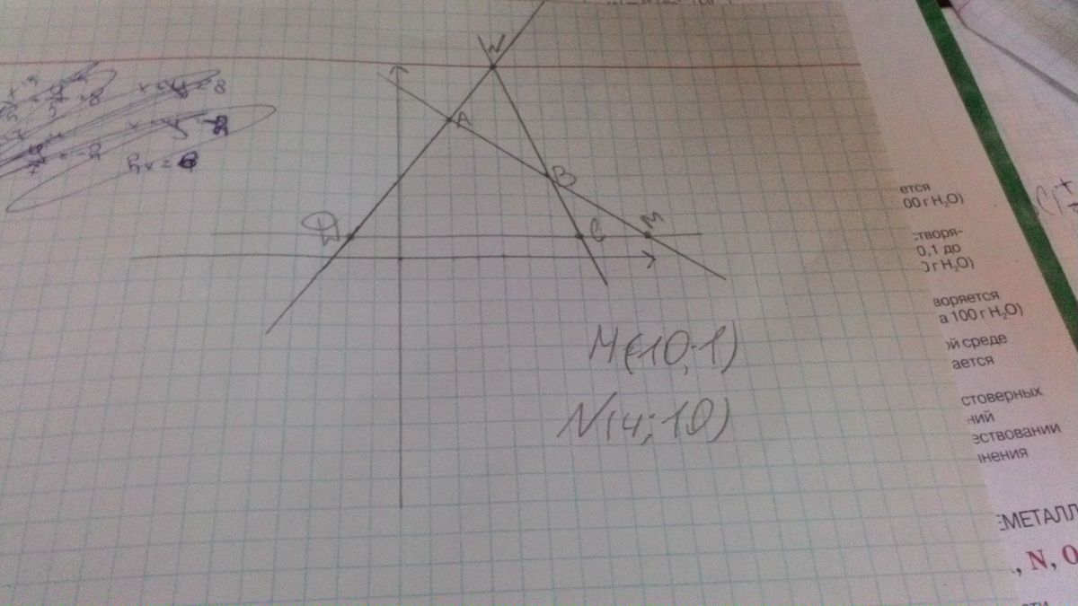 на координатной плоскости даны точки А(2;7), В(6;4), С(7;1), Д(-2;1). Постройте точку М пересечения прямых АВ и СД, и точку N пересечения прямых АД и ВС и запишите их координаты.