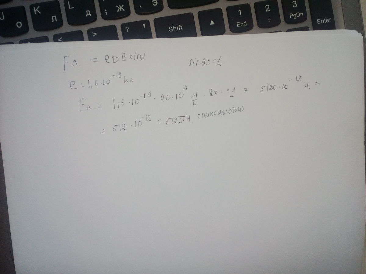 В однородном магнитное поле с индукцией 80 мТл влетает электрон со скоростью 40 Мм/с перпендикулярно к линиям индукции. Чему равна сила, действующая на электрон в магнитное поле.