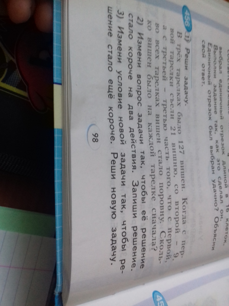 1) 21:3=7 (вишен) - съели с 3 тарелки.