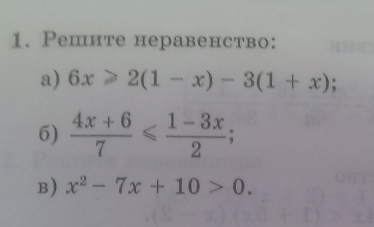 б) 2(4x+6) ≤ 7(1-3x)