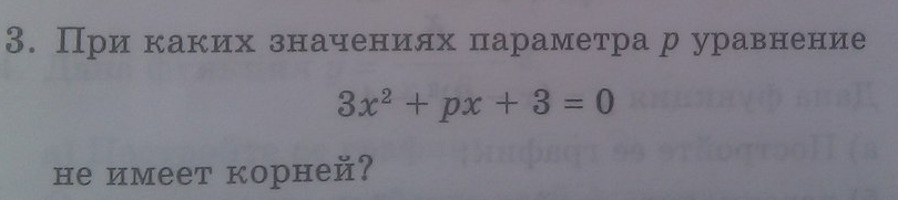(При каких значениях параметра р уравнение 3х²+px+3=0