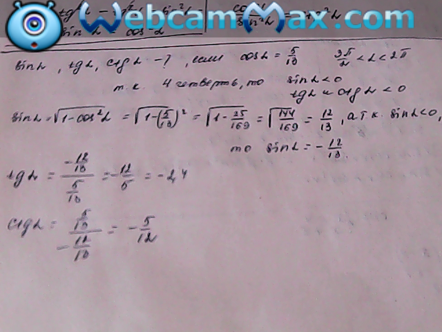 sinα , tg α, ctg α, если cosα = 5/13 и 3/2 π < α < 2π