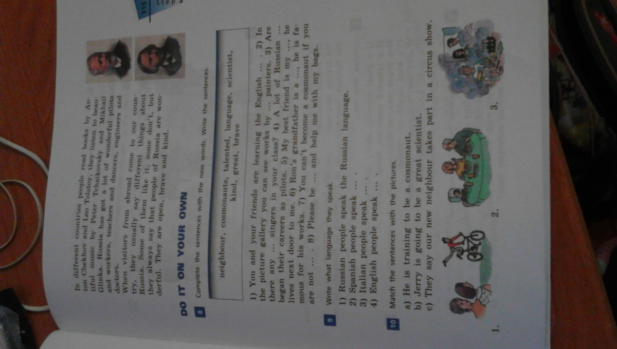 1.language 2.great 3. talented 4.cosmonauts 5.neighbour 6.scientist 7.brave 8.kind