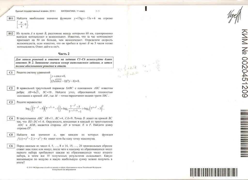 cos^2=1 не удовлетворяет, можно так сказать, а подставив в уравнение получаем 6 т.к (-п/4)